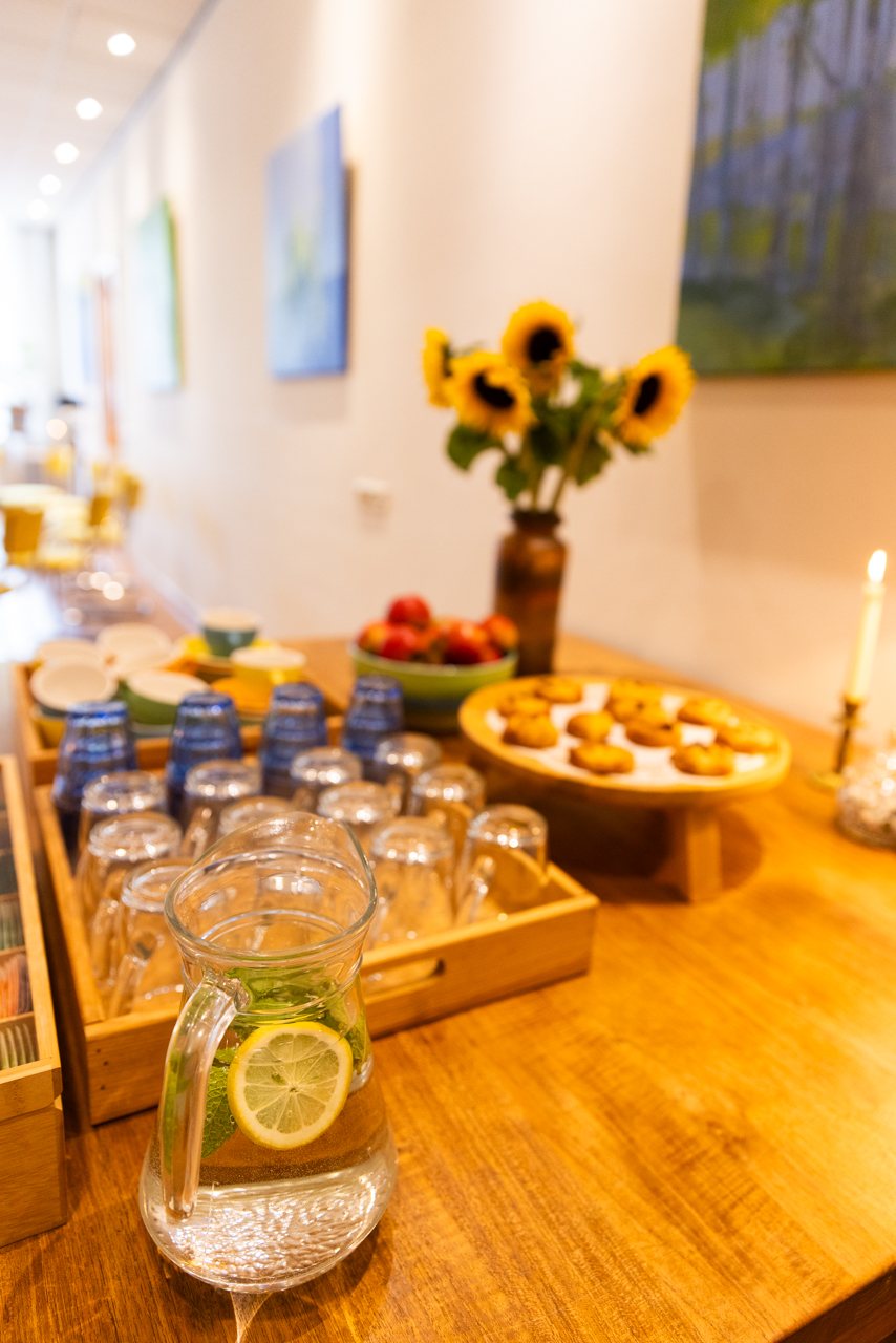 Onze lunchbuffetten zijn royaal en gevarieerd, met altijd een vegetarische, huisgemaakte soep als basis. Daarnaast serveren we vers brood, een frisse salade, een hartige quiche, tortilla of plaattaart, divers beleg, vers fruit en verschillende vruchtensappen. Alles wordt met aandacht en dagvers bereid.